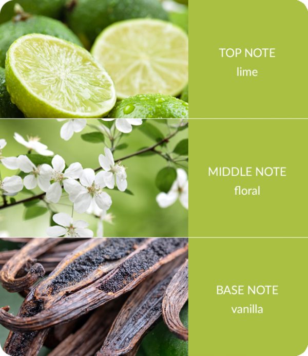 The intensity of succulent green lime enhanced with buttery vanilla to bring a sublime and harmonious fragrance experience which invigorates the soul and refreshes the home.